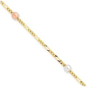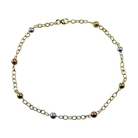 Bonded 14k Tri-Color Gold and Silver Beaded Station Anklet: Jewelry