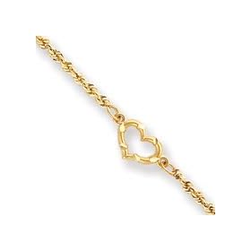14k Open Heart Rope Anklet - 10 Inch - Lobster Claw - JewelryWeb: Jewelry