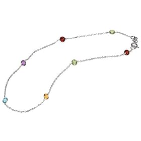 14 Karat White Gold Cable Chain, 10" Anklet Bracelet, Set with Multi-Color Semi-Precious Stones.: Jewelry