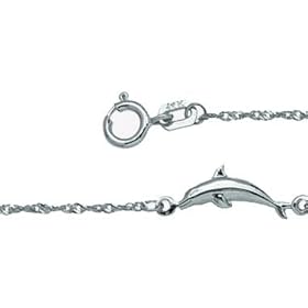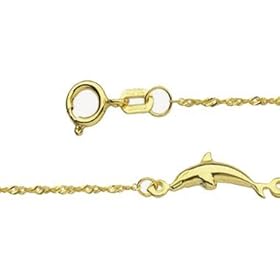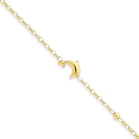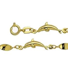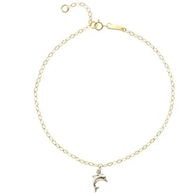 14k Dolphin Anklet - 9 Inch - Lobster Claw - JewelryWeb: Jewelry