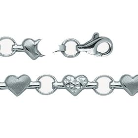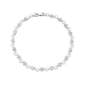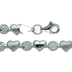 14k Polished Rhodium-Plated Xs and Hearts Anklet - 10 Inch - Lobster Claw - JewelryWeb: Jewelry