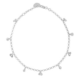 Rope Anklet with White Mirror Beads & Hearts: Jewelry
