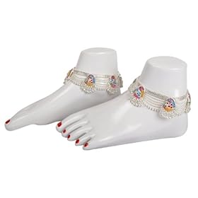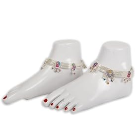 Anklets Toe Ring Pair Silver Foot Jewelry 9.5 Inches (sanklt127b): ShalinCraft: Jewelry