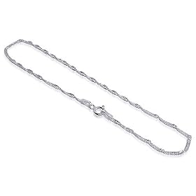 bda016-11i .925 Sterling Silver Singapore Chain Ankle Bracelet 11": Jewelry