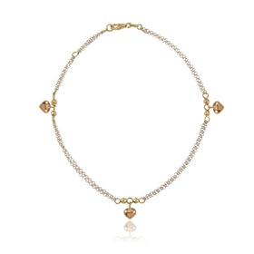 14k Gold Rolo Chain Anklet with Dangling Hearts and Beads: Jewelry