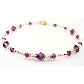 Damali 14k Gold Anklet - Purple Crown (Sahasrara) Chakra Anklet for inner wisdom, meditation, motivation, spirituality, unity: Damali: Jewelry