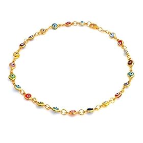 Bling Jewelry Multi Color 14k Gold Vermeil Evil Eye Anklet Anklet 10 in.: Jewelry