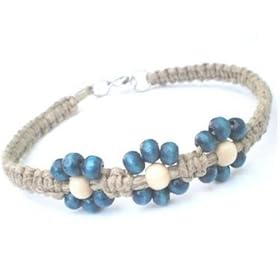 Beach Bella Blue Beaded Hawaiian Inspired Hemp Flower Anklet: Jewelry