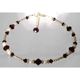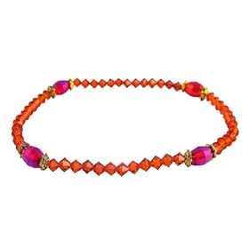 Anklet - A95 - Swarovski TM Crystal and Fire Polished Faceted Glass Beads - Stretch ~ Indian Red (Dark Orangey Red): SERENITY CRYSTALS: Jewelry