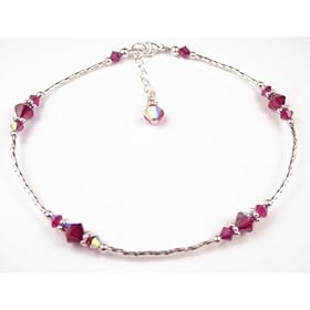 Damali .925 Sterling Silver Anklets Ruby - July - Silver Swarovski Crystal Ankle Bracelets. - SMALL 8.5 In.: Damali: Jewelry