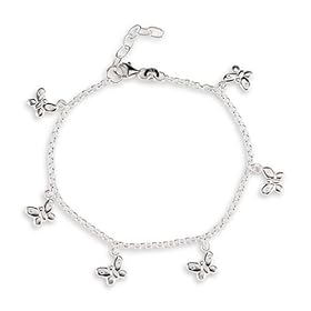 Bling Jewelry .925 Sterling Silver Open Butterflies Ankle Bracelet: Jewelry