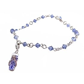Anklet - A56 - Sized to Fit - Swarovski (tm) Crystal Beads ~ Lt. Sapphire with FlipFlop Slipper Charm.: SERENITY CRYSTALS: Jewelry
