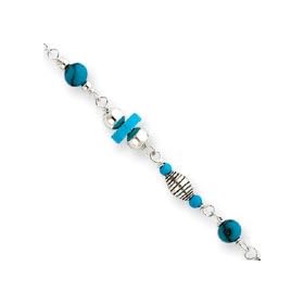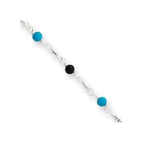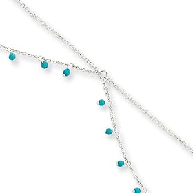 Sterling Silver Created Turquoise Anklet Bracelet - 9 Inch - Spring Ring - JewelryWeb: Jewelry