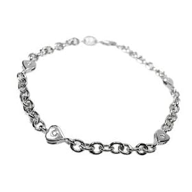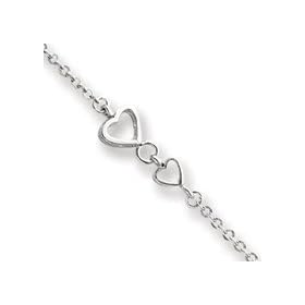 14k White Small Heart Link Anklet - 10 Inch - JewelryWeb: Jewelry