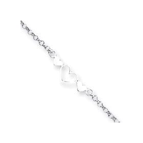 10 K White Gold 10" Belcher Style 3 Heart Charm Anklet: Jewelry