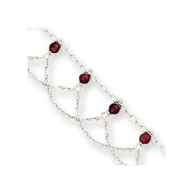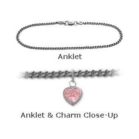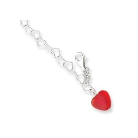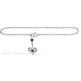 Sterling Silver Red Crystal Heart Link Anklet - 10 Inch - Lobster Claw - JewelryWeb: Jewelry
