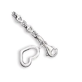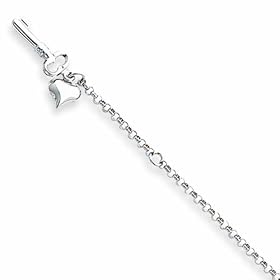 .925 Sterling Silver 2mm Link Chain with 7 x 8mm Heart Charm 9" to 10.25" Anklet: Jewelry