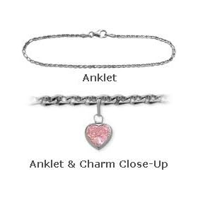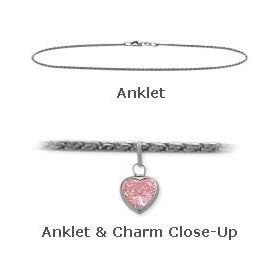 10 K White Gold 10" Belcher Style Created 1.00 tcw. Tourmaline Pink Stone Heart Charm Anklet: Jewelry