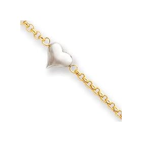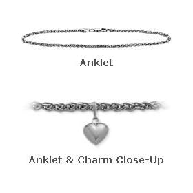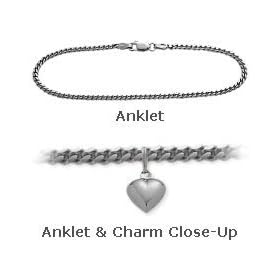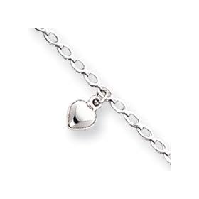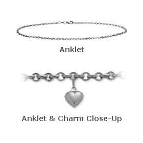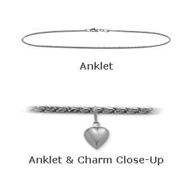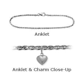 14 K White Gold 10" Curb Style Anklet with 9mm Heart Charm: Jewelry