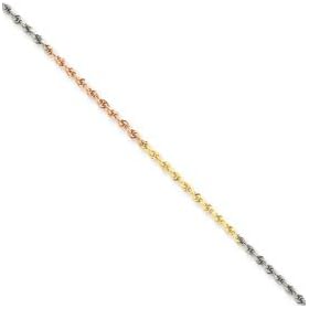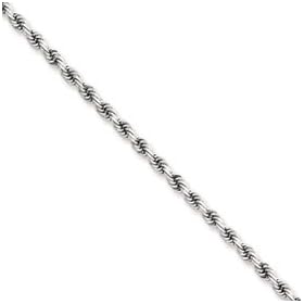 14k White Gold 10 Inch X 2.3 mm Rope Chain Anklet - JewelryWeb: Jewelry