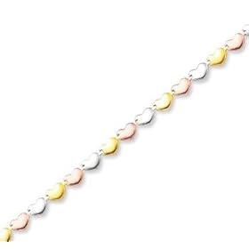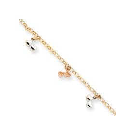 14 K White Gold 10" Flat Gucci Style 3 Heart Charm Anklet: Jewelry