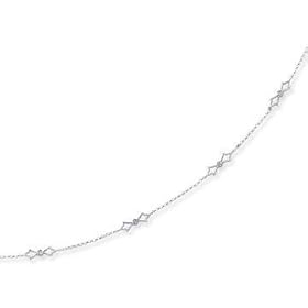 14k White Gold, Diamond Cross & Diamond-Shape Link Anklet: Jewelry