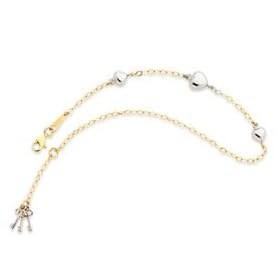 14k Gold White Gold Double Strand Heart Anklet: Jewelry