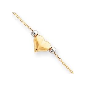 14k White Puffed Heart Station Anklet - 10 Inch - JewelryWeb: Jewelry