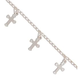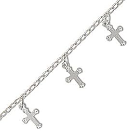 Sterling Silver 9 Inch Anklet with Cross Charms: West Coast Jewelry: Jewelry