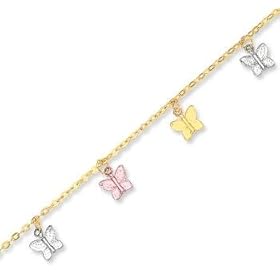 14K White Gold Butterfly Anklet, 10 Inch: Jewelry