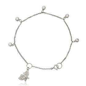 Sterling Silver CZ Butterfly Anklet: Jewelry