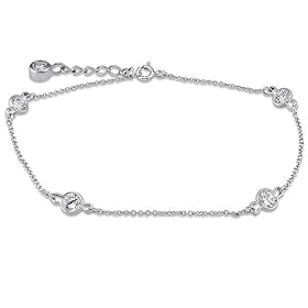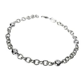 Sterling Silver Anklet Ankle Bracelet Cubic Zirconia CZ By-Yard Chain: Jewelry