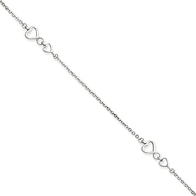 14k White Gold Open Hearts Rolo Chain Anklet - 10 Inch - Lobster Claw - JewelryWeb: Jewelry