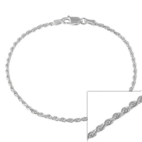 14k White Gold 2mm Diamond-Cut Rope Chain Anklet - 9 Inch - Lobster Claw - JewelryWeb: Jewelry