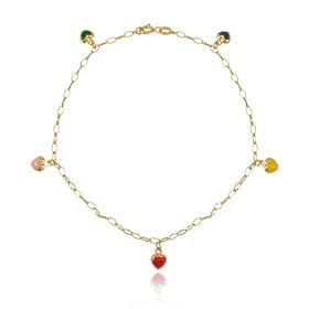 14k Yellow Gold Anklet (Ankle Bracelet) with Enamel Colored Gold Hearts: Jewelry