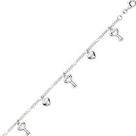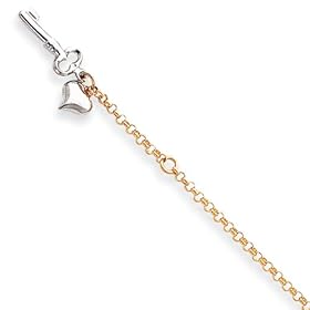 14k White Gold Adjustable Polished Puffed Heart & Key Anklet: Shop4Silver: Jewelry
