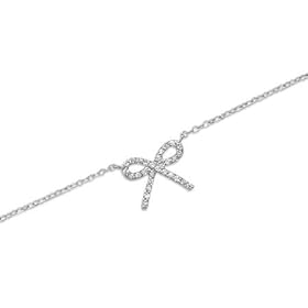 Sterling Silver CZ Bow Ribbon Charm Anklet Ankle Bracelet Adjustable 9-10" Rhodium Plated: Jewelry