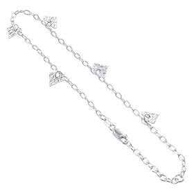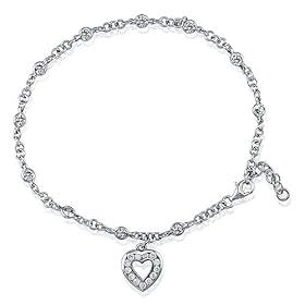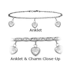 Sterling Silver Anklet Ankle Bracelet Cubic Zirconia CZ Heart Charm: Jewelry