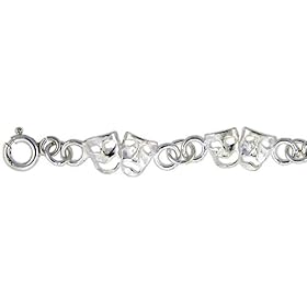Sterling Silver Anklet w/ Comedy & Tragedy Drama Masks: Jewelry
