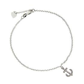 Sterling Silver CZ Anchor Charm Anklet: Eve"s Addiction: Jewelry