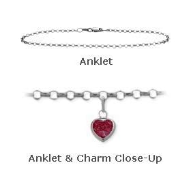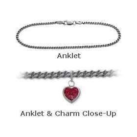 10 K White Gold 10" Belcher Style Created 1.00 tcw. Ruby Stone Heart Charm Anklet: Jewelry