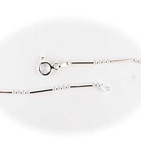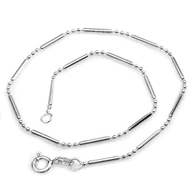 Sterling Silver Bead and Bar Chain Bracelet Anklet 9 inch long 1.2 mm thickness Rhodium Plated Spring Ring Clasp: Jewelry