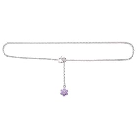Sterling Silver 9" Chain Anklet with Dangling CZ and Purple Flower Charm: Jewelry
