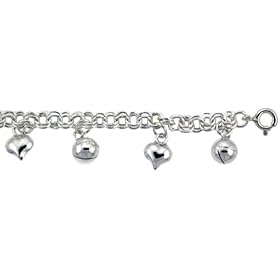 Sterling Silver Charm Anklet w/ Hearts and Chime Balls: Jewelry