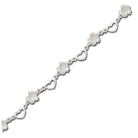 Sterling Silver Anklet w/ Hearts and Flowers: Jewelry