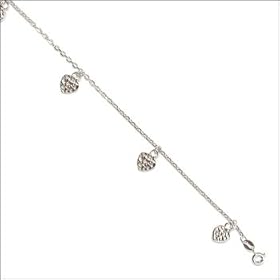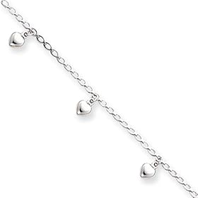 Sterling Silver Anklet with Puffy Heart Stations, 10": Jewelry