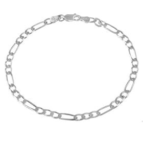 14k White Gold 3mm Flat Figaro Anklet, 9 Inch: Jewelry