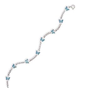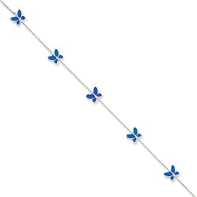 14k White Gold Blue Enameled Butterfly Anklet Length 10": Jewelry