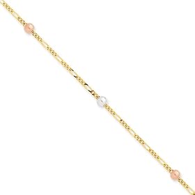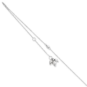14k White Fancy Bead Station Anklet - 10 Inch - JewelryWeb: Jewelry