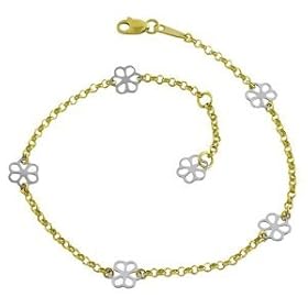14k Yellow Gold Anklet (Ankle Bracelet) Flower Charms Pendants: Jewelry